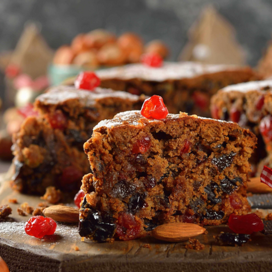 "My supply of Mileeven Fruit Cakes arrived today! With a side of Cleeve's."