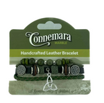 Fully adjustable, leather,  handcrafted bracelet with Trinity Knot Charm. This Connemara marble, one of the world’s oldest minerals and rarest marble in the world, was hand lifted from their quarry in Lissoughter, Recess Co. Galway. No two...
